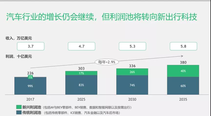 汽車行業(yè)產(chǎn)生的收入將繼續(xù)增長,未來幾年傳統(tǒng)業(yè)務仍將是主要的利潤組成部分,新興“利潤池”的增長速度業(yè)相對較慢。
